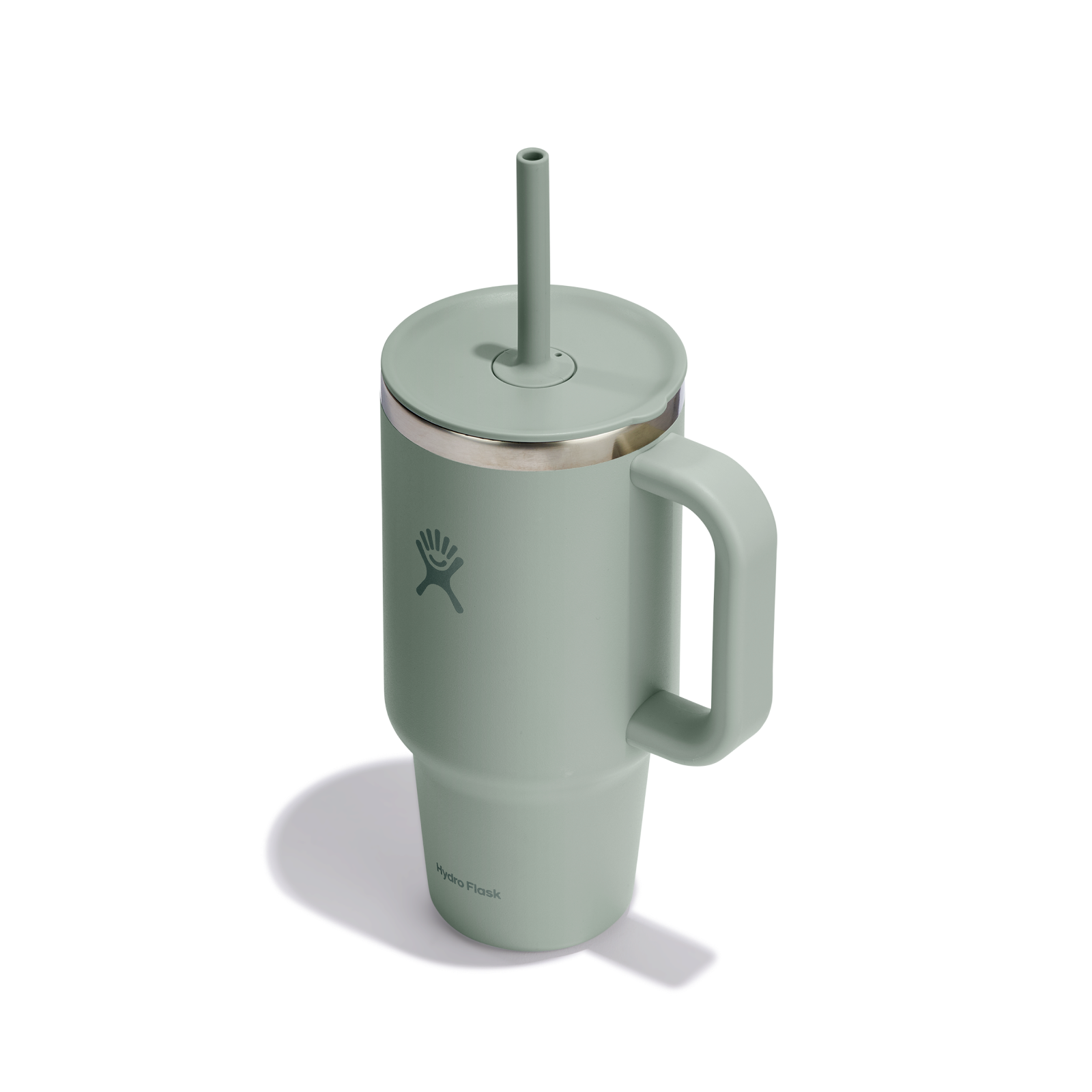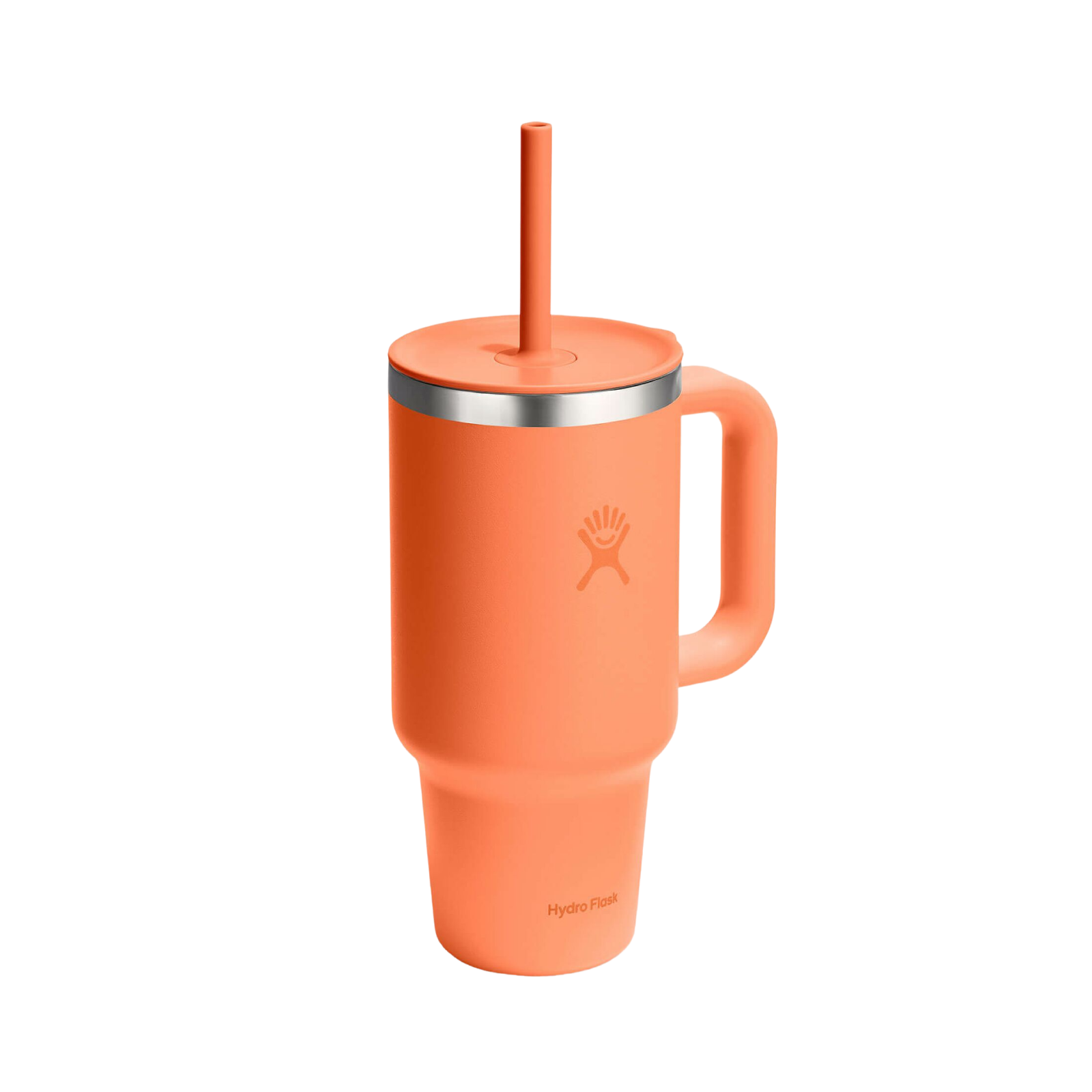 The insulated Hydro Flask 32 oz Travel Tumbler cup is here to hydrate more and refill less. The insulation keeps drinks cold for hours, and the durable handle makes it easy to take along anywhere. The 32 oz size stainless steel tumbler bottle can go anywhere, even fitting most cupholders. Cold stays cold, and the flexible straw is easy to sip any which way.