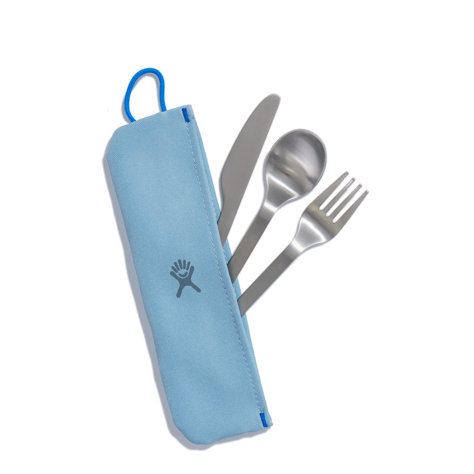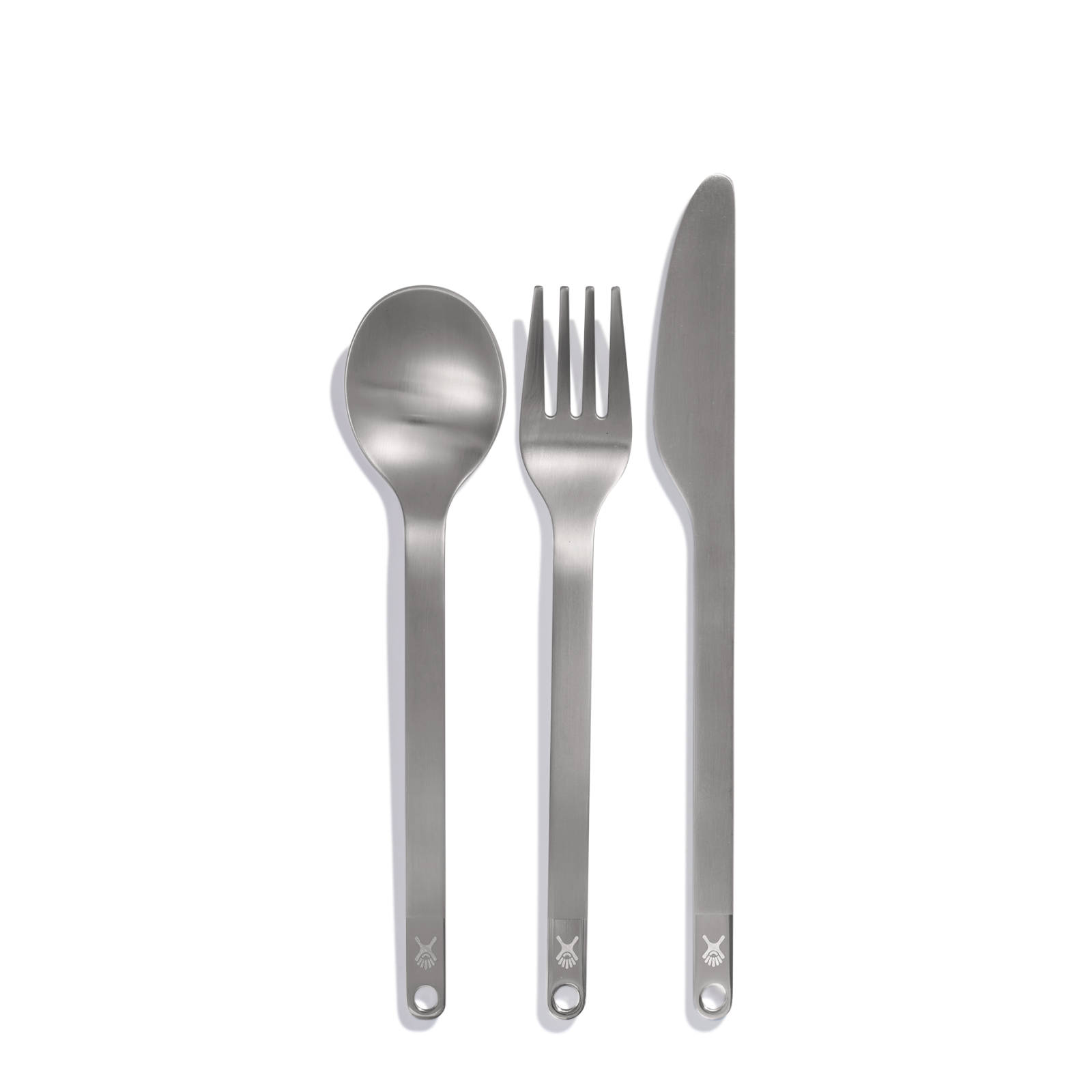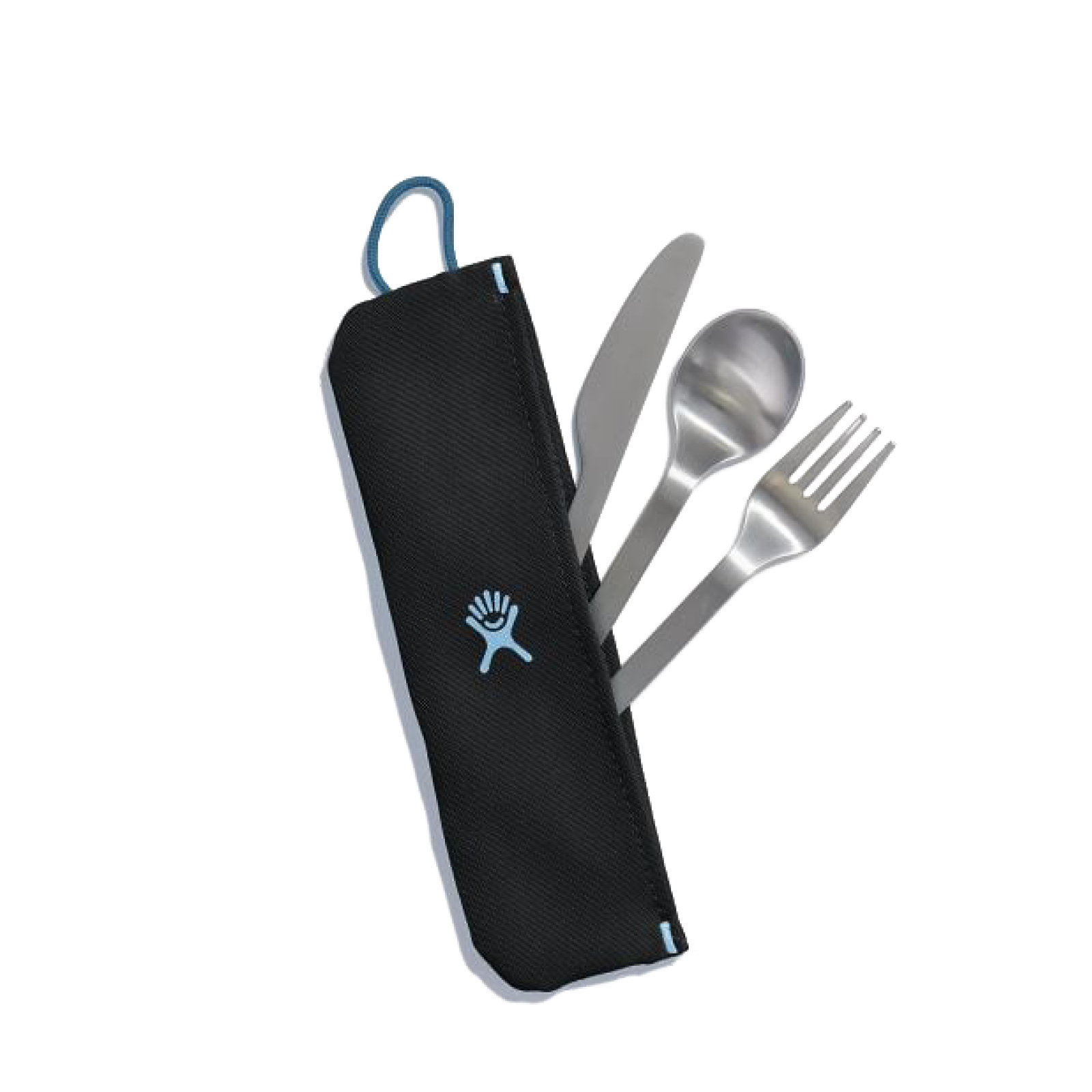 - Includes fork, spoon, serrated knife and carrying sleeve